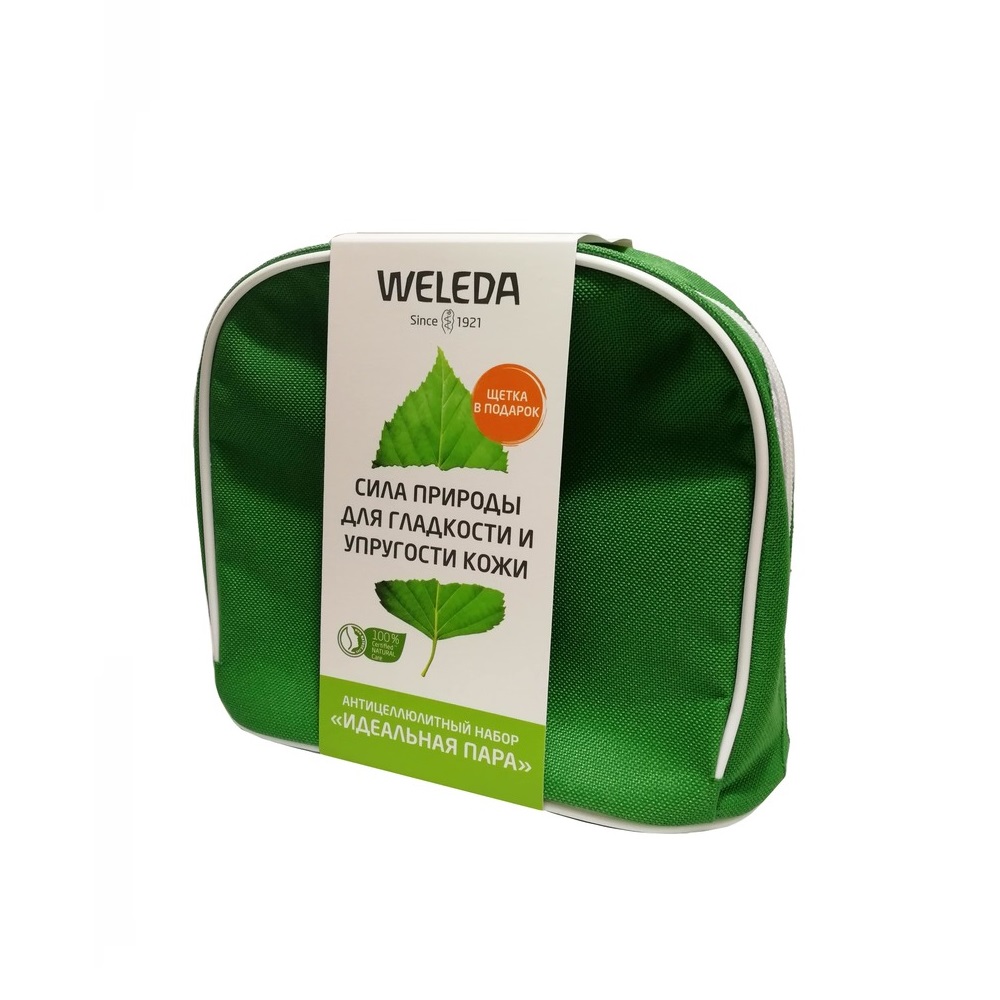 В бонус специальная деревянная щетка для антицеллюлитного массажа и удобная дорожная косметичка.