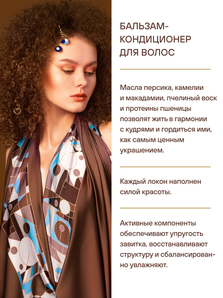 Бальзам обеспечивает увлажнение и блеск как натурально вьющимся, так и химически завитым волосам. Благодаря пантолактону и маслу персика, делает волосы мягкими и послушными.