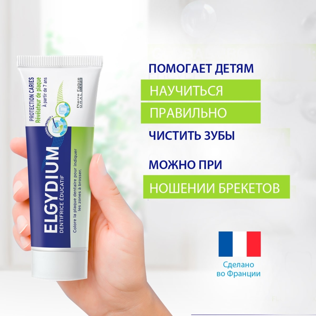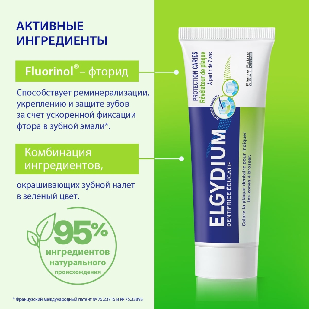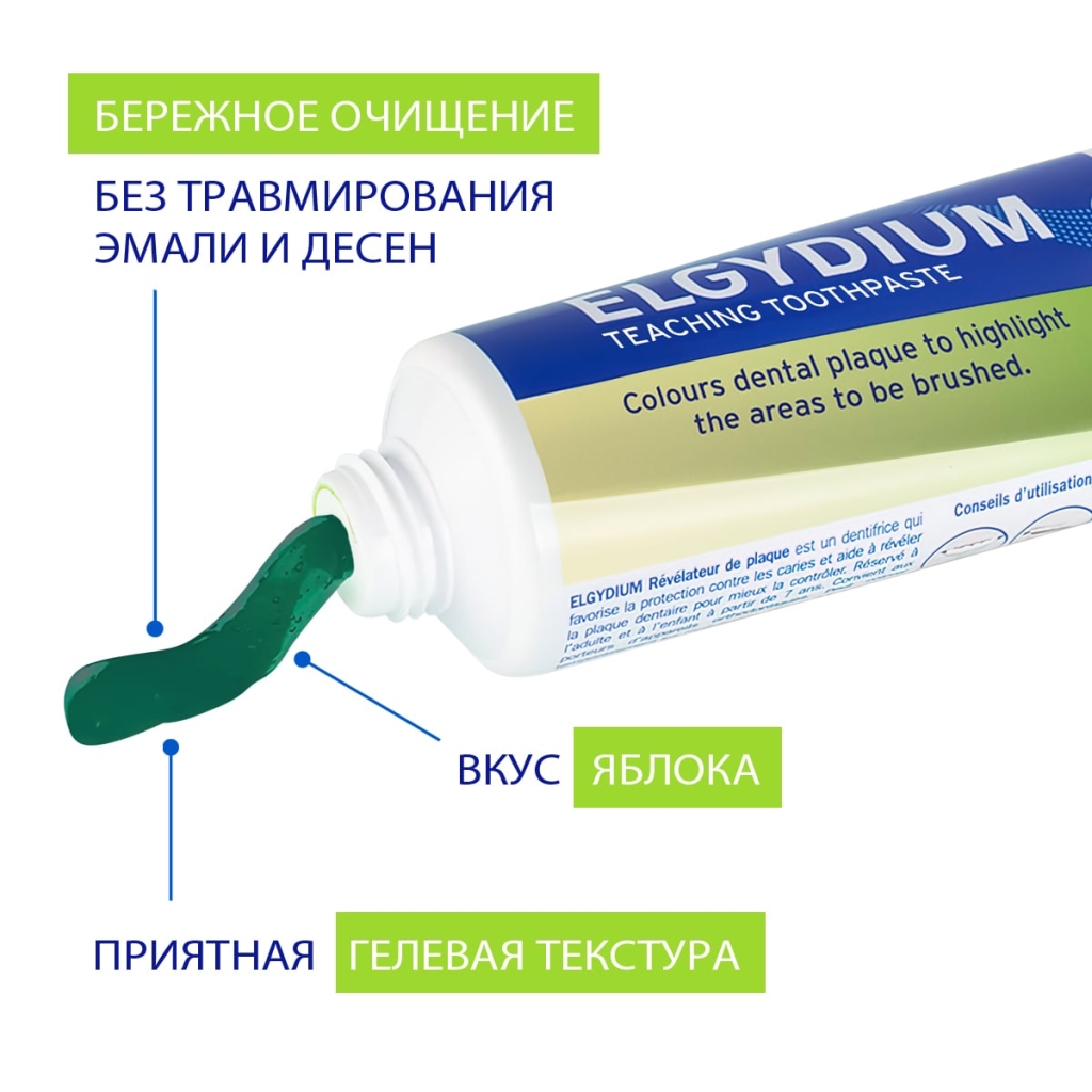 Детская обучающая зубная паста Эльгидиум помогает улучшить технику чистки зубов, окрашивая плохо очищенные области в зелёный цвет. Формула зубной пасты способствует реминерализации зубной эмали и защите от кариеса. Подходит для ортодонтических конструкций.