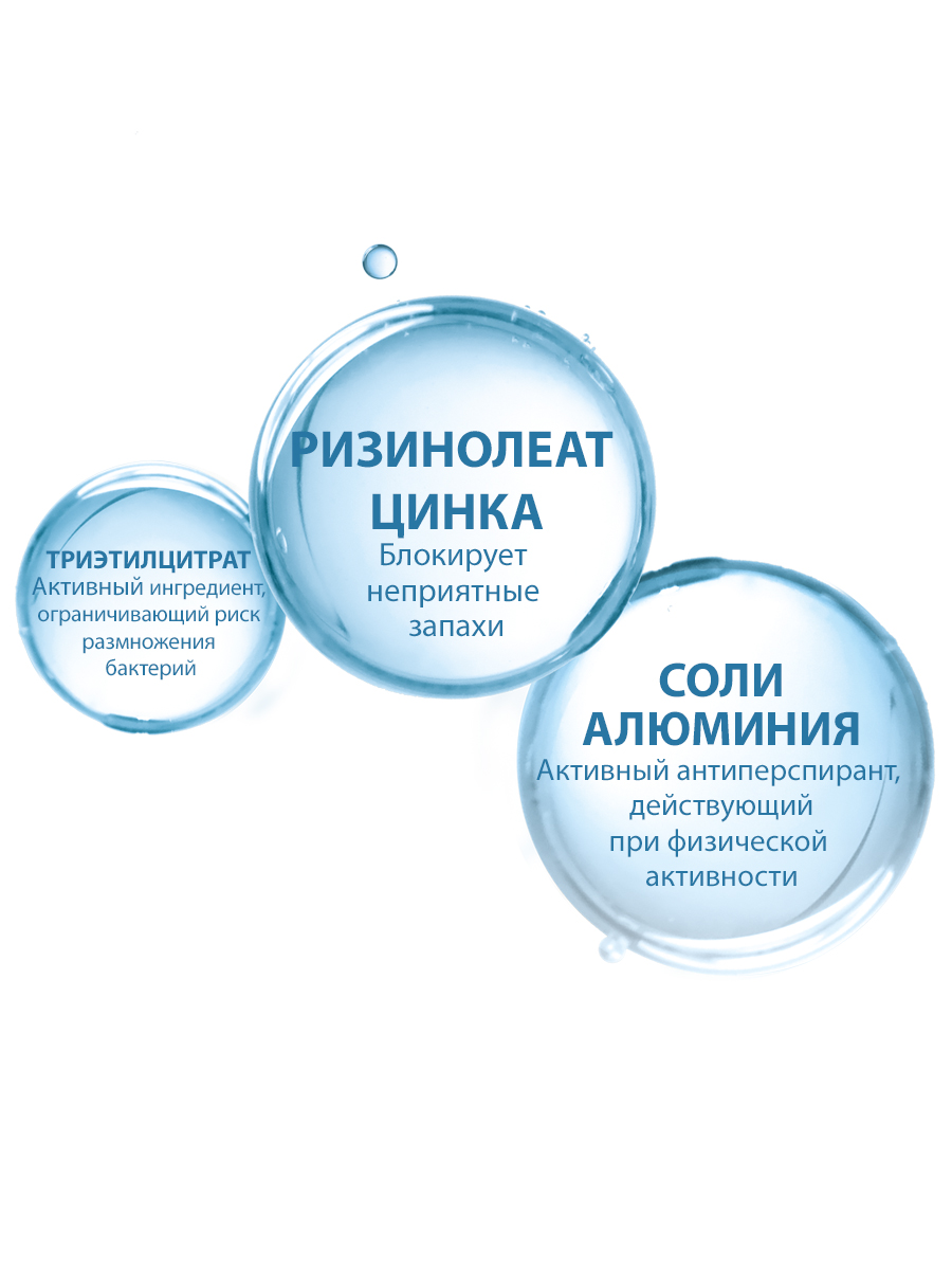 Состав: aqua, cetearyl alcohol, aluminum sesquichlorohydrate, 1,2-hexanediol, ceteareth-20, triethyl citrate, citric acid, dimethicone, clyceryl stearate, lysine, peg-100 stearate, propylene glycol, zinc ricinoleat.