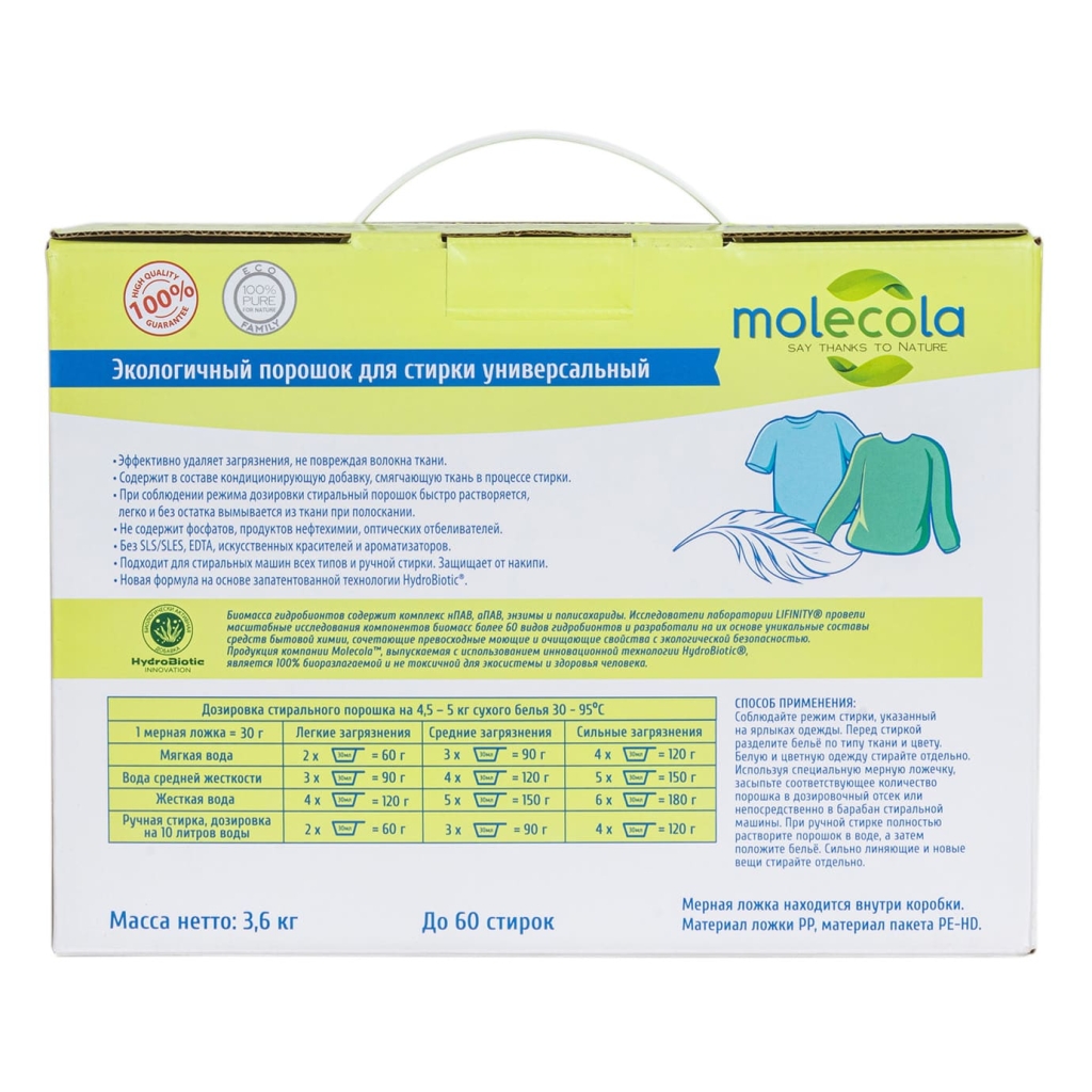 Экологичный универсальный порошок разработан для машинной и ручной стирки белого и цветного белья из хлопчатобумажных, синтетических и смесовых тканей при температуре от 30 до 90 градусов. Кондиционирующая добавка в составе способствует смягчению ткани во время стирки. При соблюдении режима дозировки стиральный порошок быстро растворяется, легко и без остатка вымывается из ткани при полоскании.
