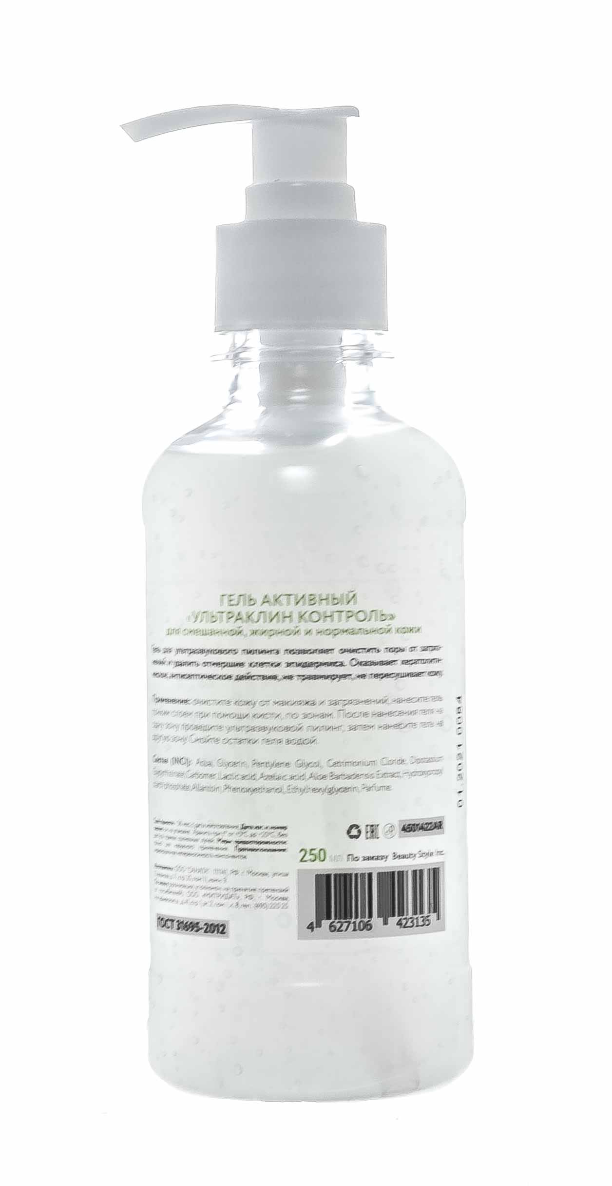 Гель «Ультраклин контроль» разработан специально для проведения ультразвукового пилинга по жирной, смешанной, комбинированной коже, и способствует максимально эффективному и деликатному очищению кожи ультразвуком.
