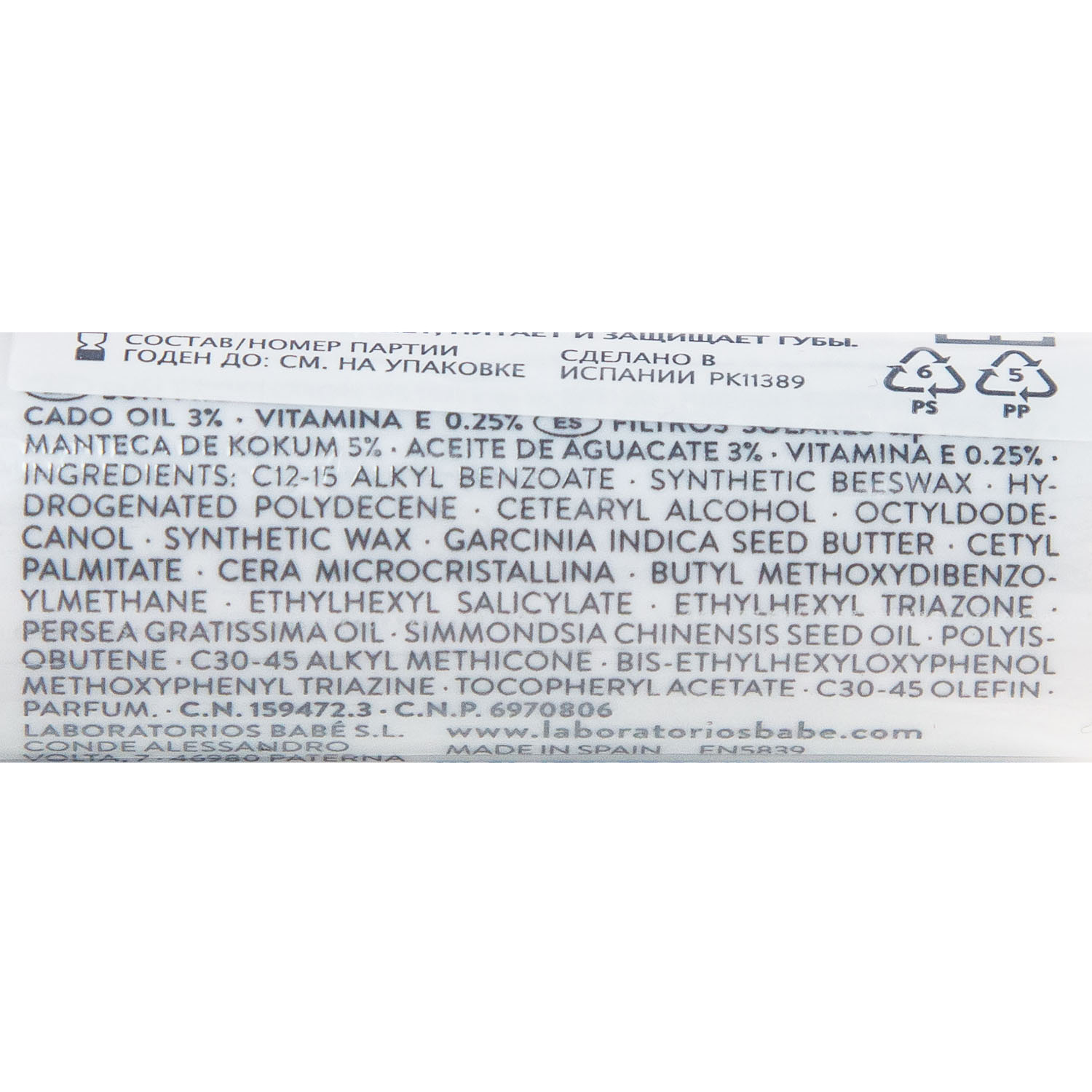 Состав: c12-15 alkyl benzoate, synthetic beeswax, hydrogenated polydecene, cetearyl alcohol, octyldodecanol, synthetic wax, garcinia indica seed butter, cetyl palmitate, cera microcristallina, butyl methoxydibenzoylmethane, ethylhexyl salicylate, ethylhexyl triazone, persea gratissima oil, simmondsia chinensis seed oil, polyisobutene, c30-45 alkyl methicone, bis-ethylhexyloxyphenol methoxyphenyl triazine, tocopheryl acetate, c30-45 olefin, parfum