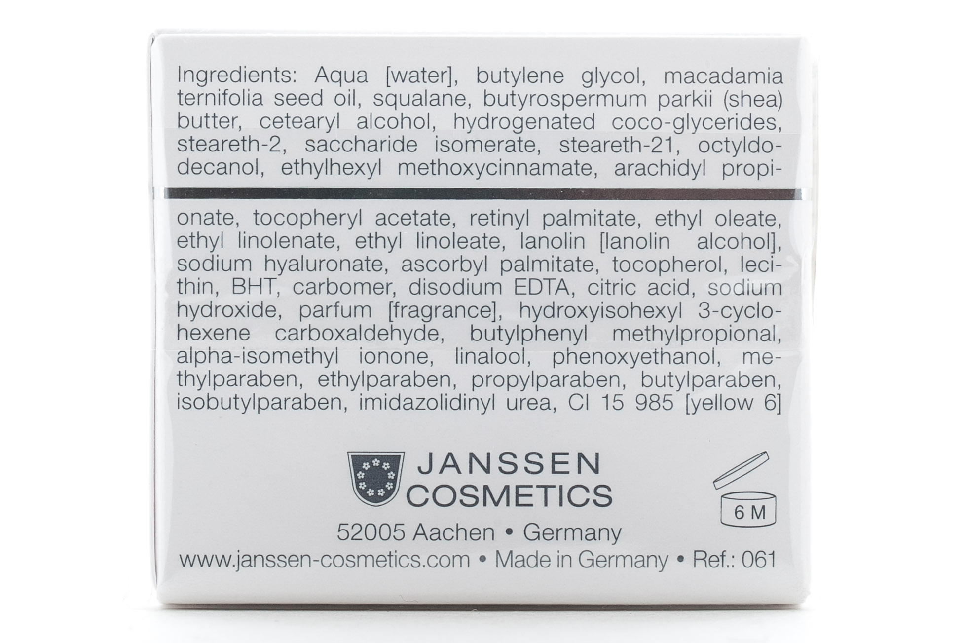 Масла макадамии, ши, сквалан, сахариды, витамины А, С и Е, арахидоновая кислота, гиалуроновая кислота, лецитин.