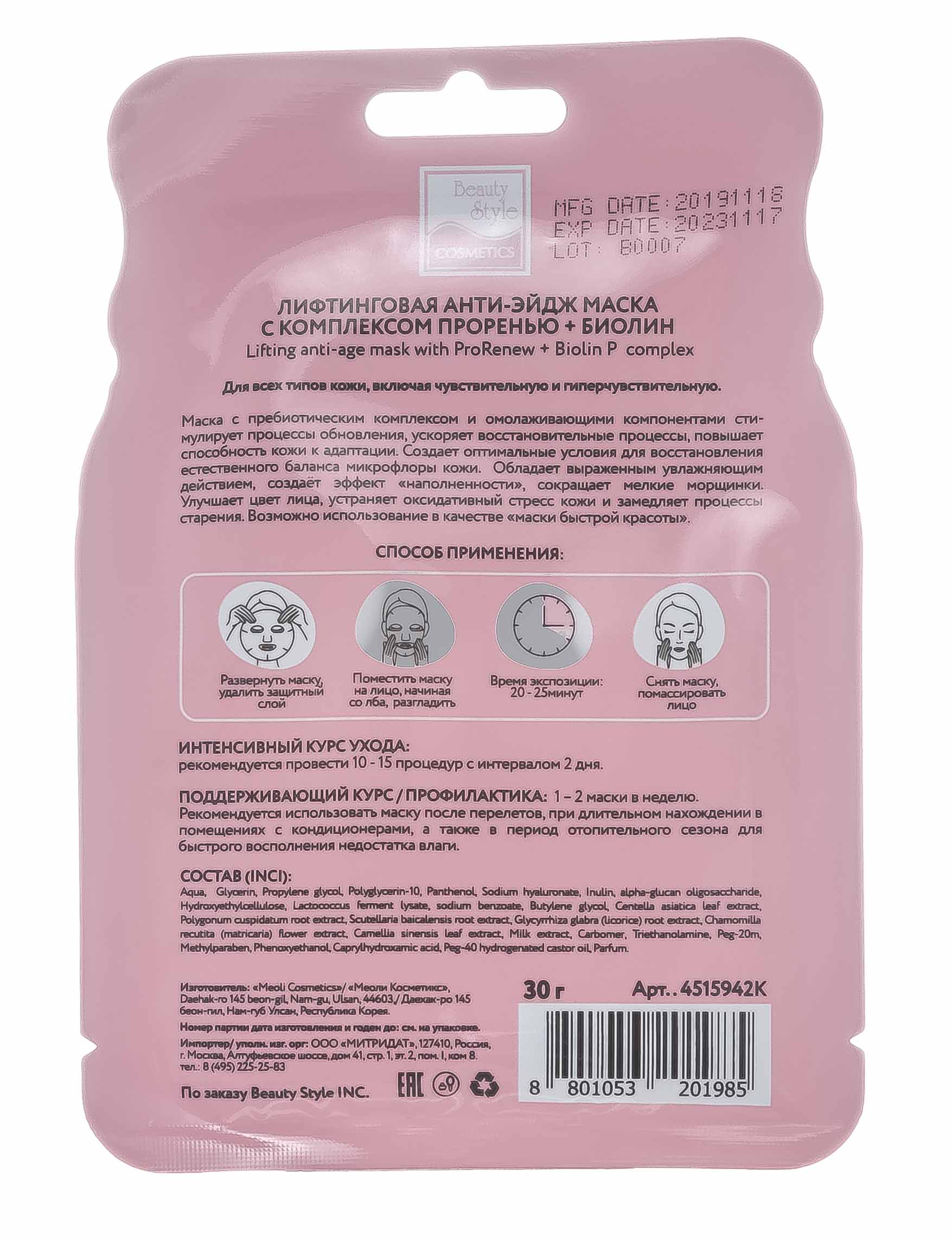 Лифтинговая анти-эйдж маска с комплексом ПроРенью + Биолин разработана для ухода за всеми типами увядающей кожи. Препарат на нетканой основе содержит высокую концентрацию активных веществ, которые обеспечивают интенсивный уход за кожей с выраженными признаками старения. Уже после первого применения кожа лица выглядит более сияющей и молодой, морщины становятся менее выраженными, устраняется оксидативный стресс.