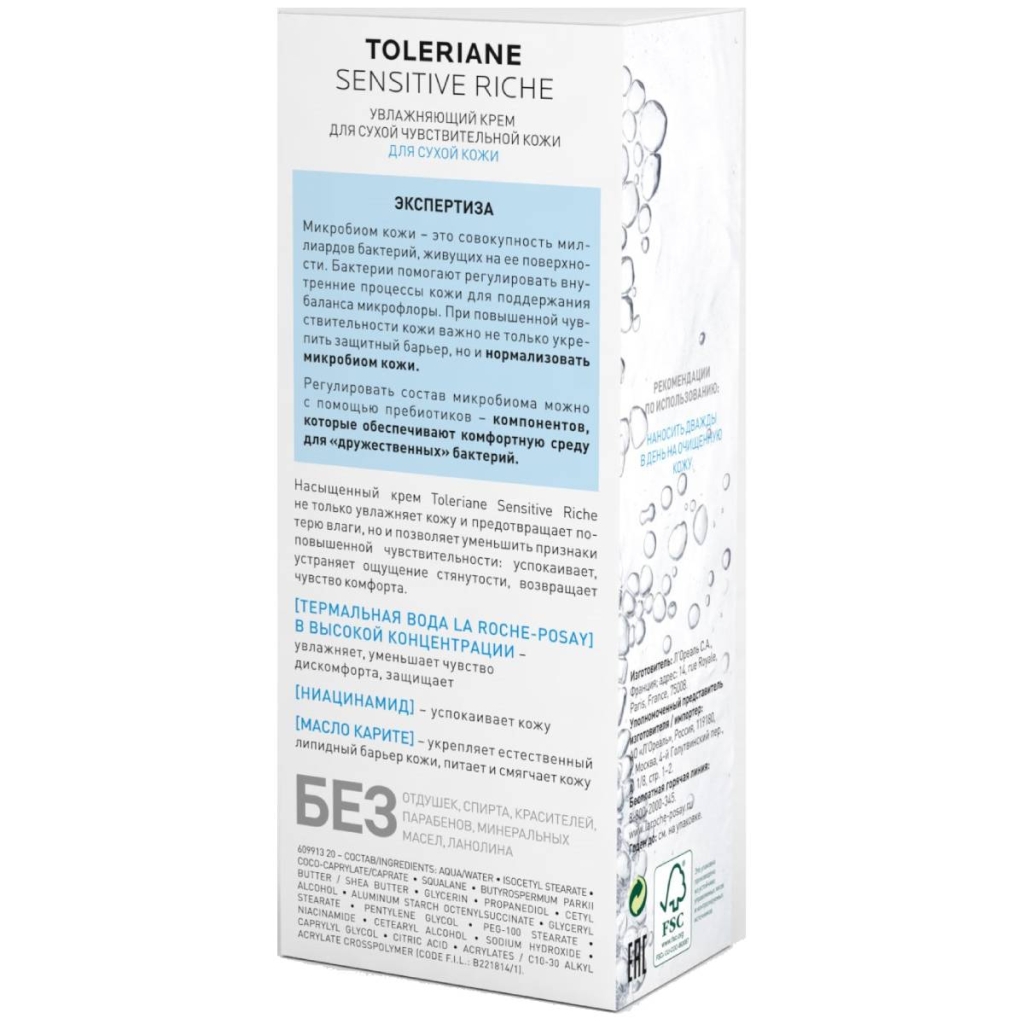 Пребиотический уход Toleriane Sensitive Riche предназначен специально для сухой чувствительной кожи. Он не только увлажняет кожу и предотвращает потерю влаги, но и позволяет уменьшить признаки повышенной чувствительности: успокаивает, устраняет ощущение стянутости, возвращает чувство комфорта. Кожа меньше теряет влагу и лучше защищена от воздействия агрессивных факторов внешней среды. Насыщенная текстура комфортно распределяется, не оставляя ощущения жирности и липкости и не забивая поры.