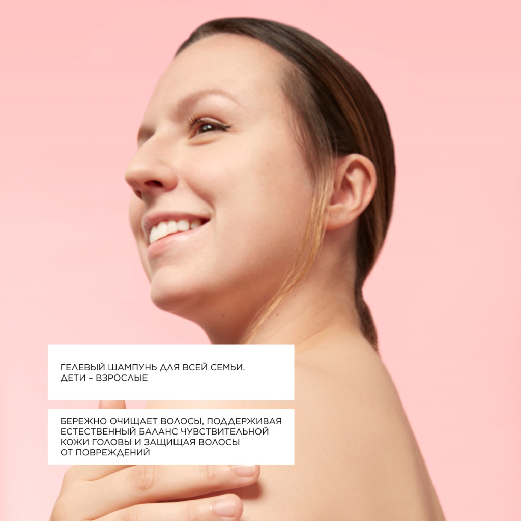 Гелевый шампунь для всей семьи бережно очищает волосы, поддерживая естественный баланс чувствительной кожи головы и защищает хрупкий волосяной стержень от повреждений. После применения волосы становятся мягкими, блестящими и сильными.